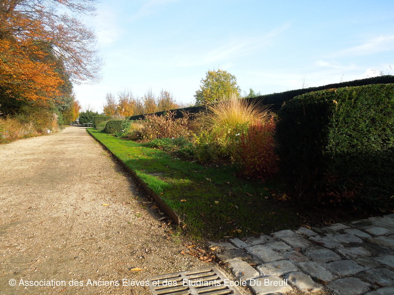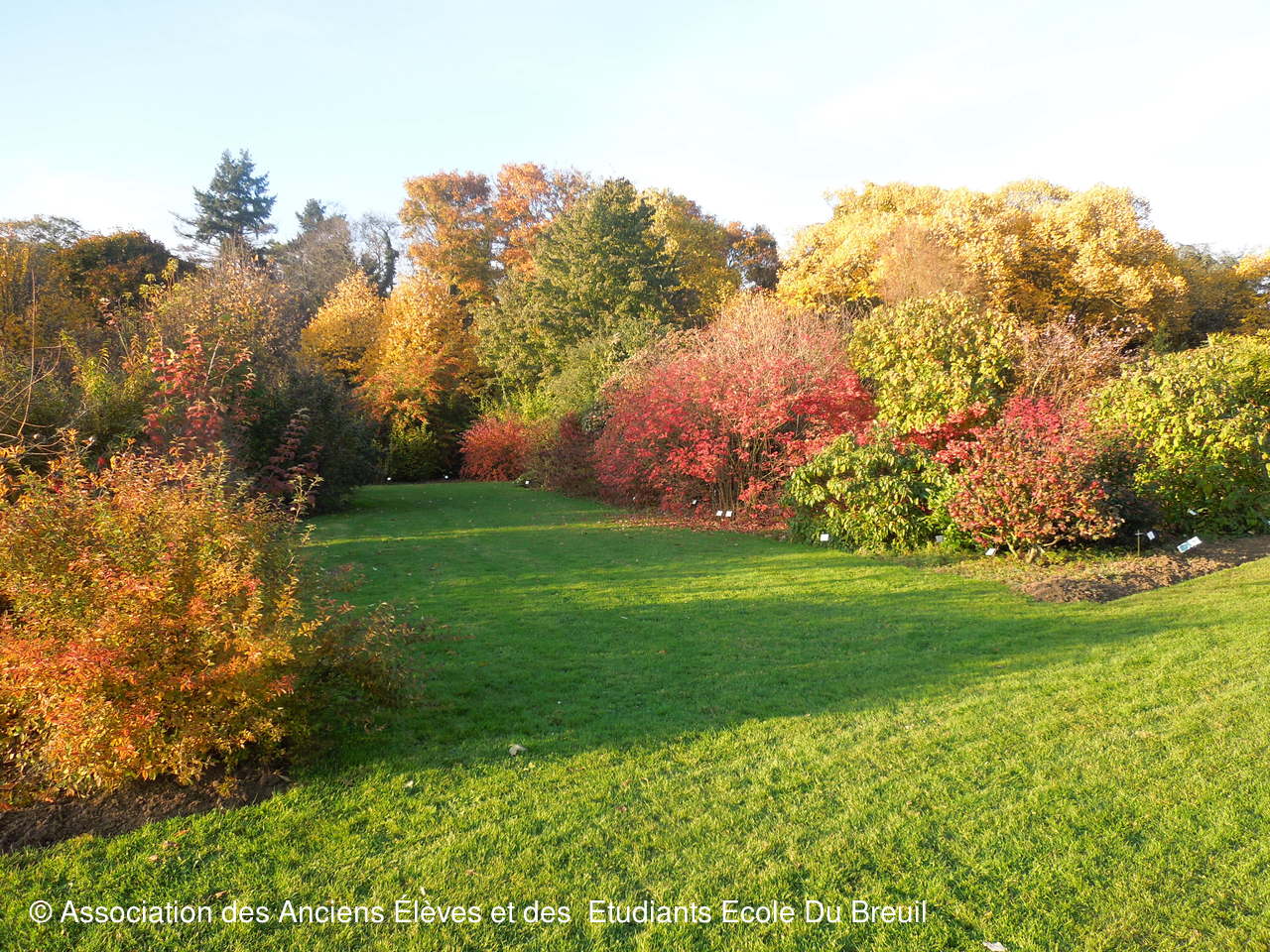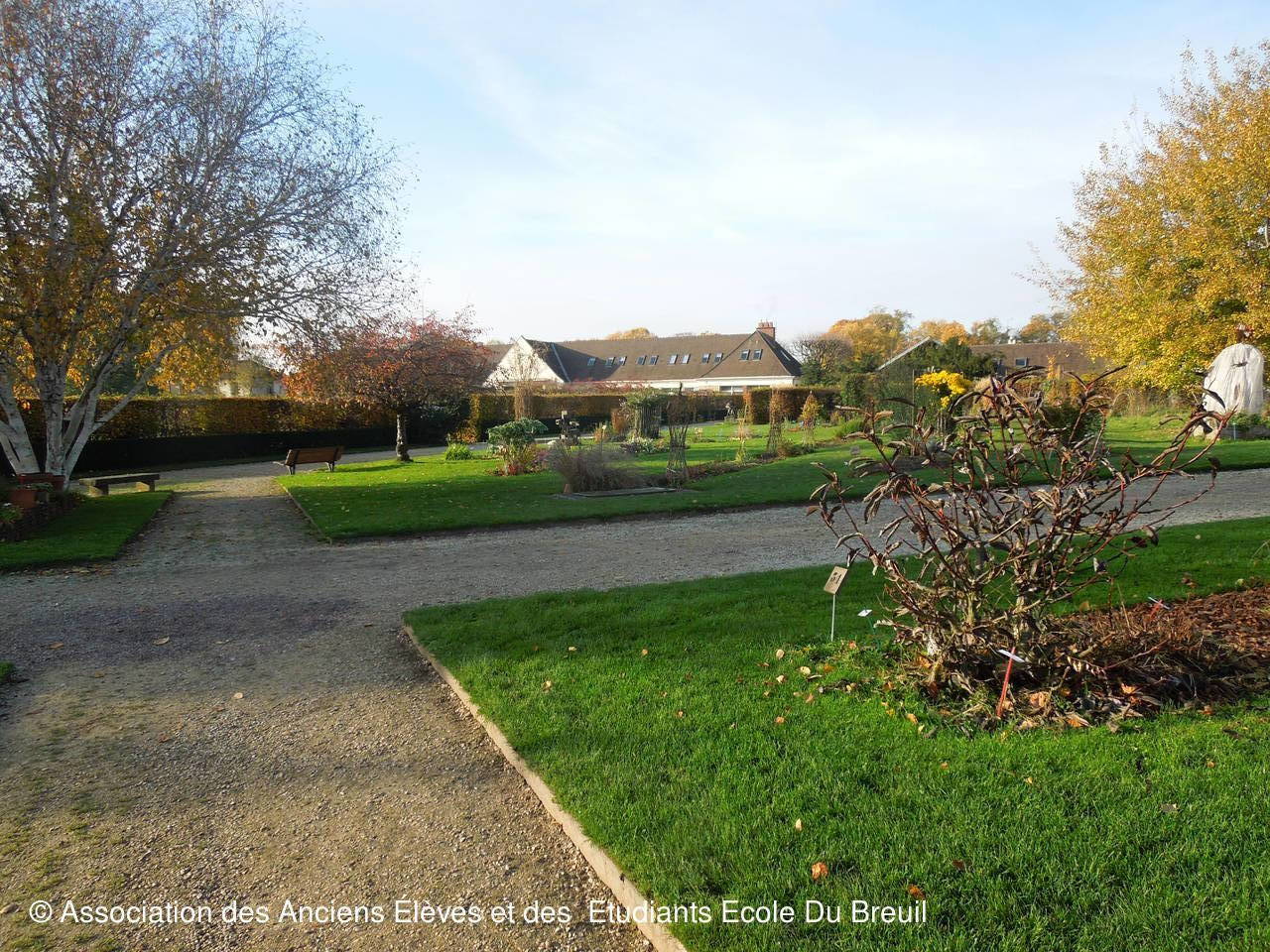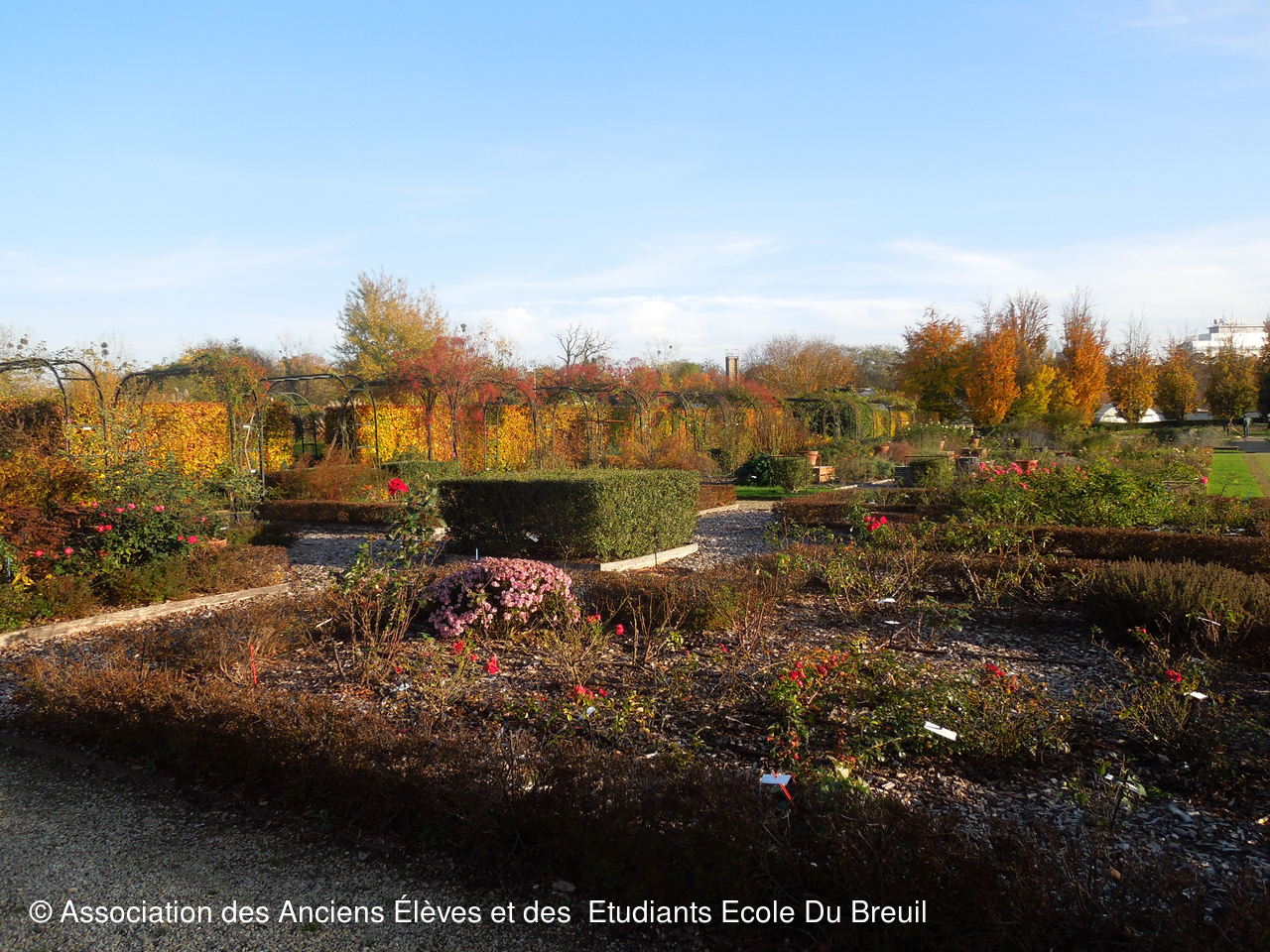 Des plates- bandes florales au fruticetum en passant par la partie paysagère (rénovation d'un massif de terre de bruyère), la mare, le "champ de manoeuvre " des élèves, la roseraie, petit voyage en notre belle école, où les couleurs d'automne sont encore marquées.