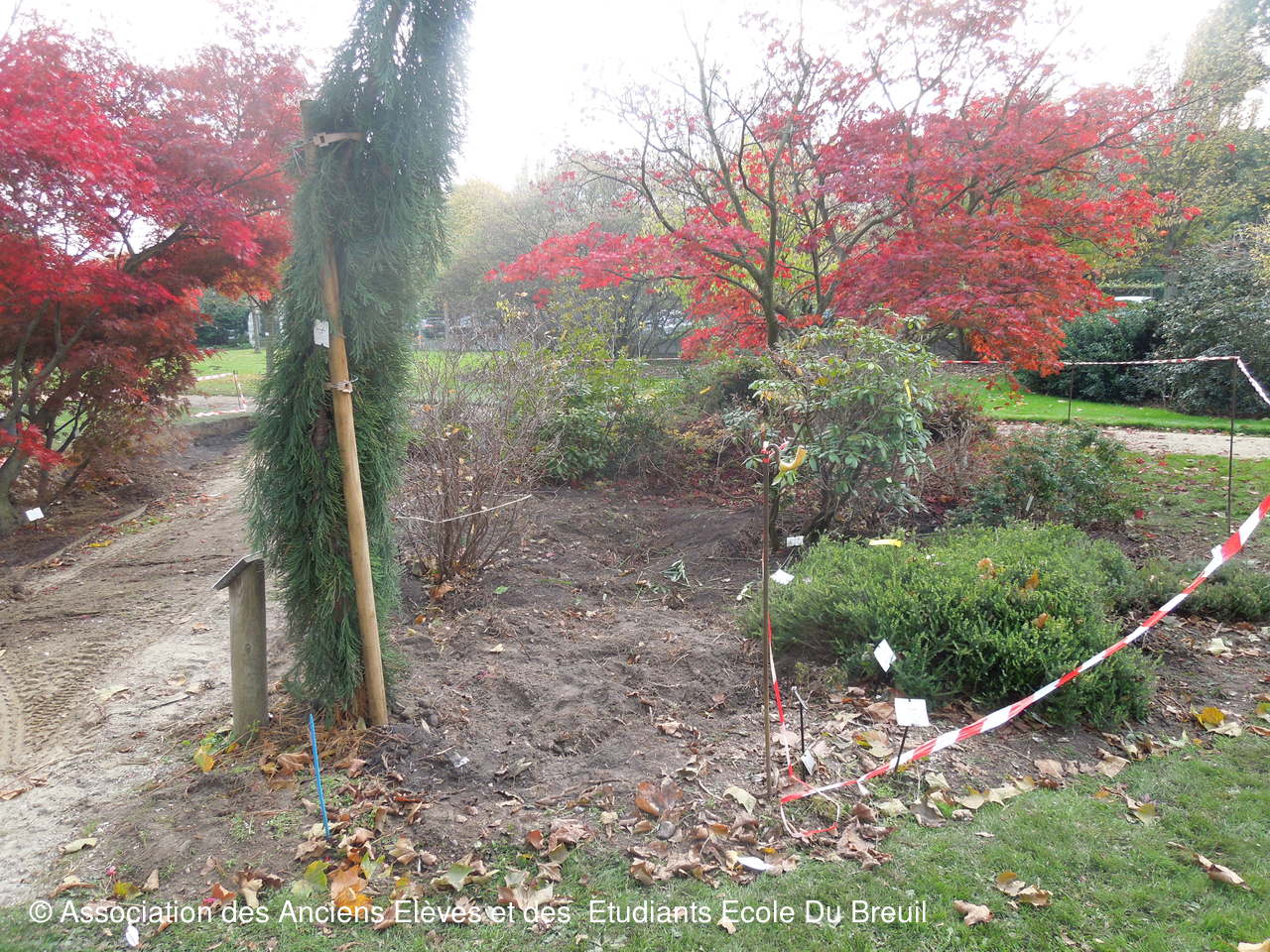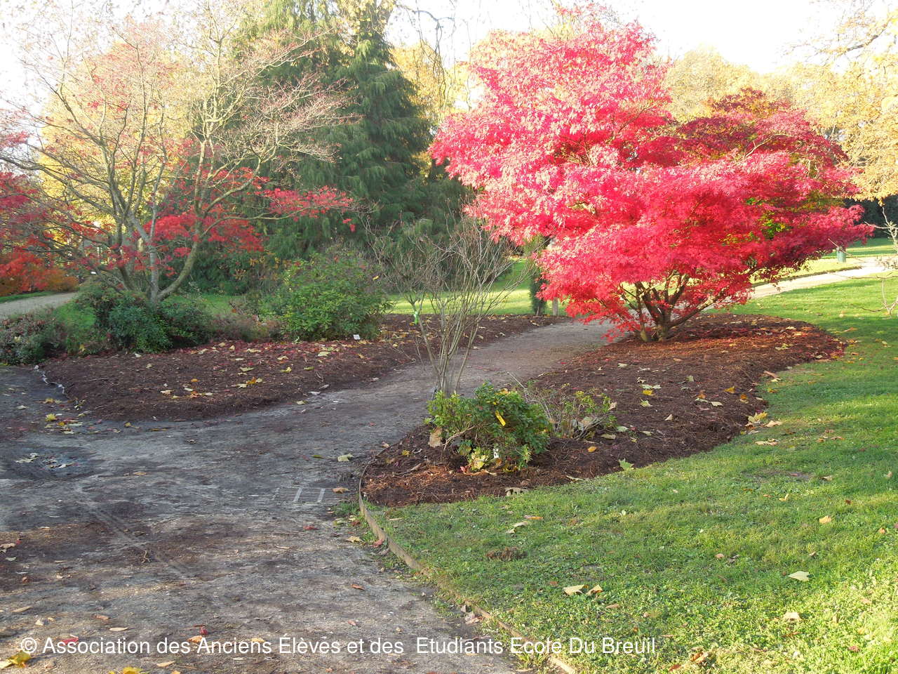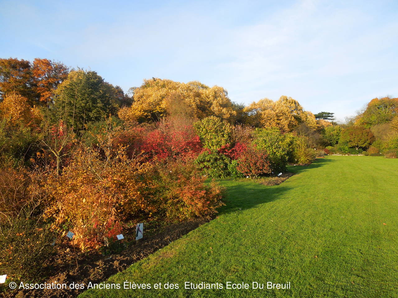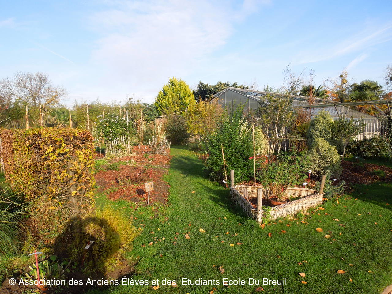 Des plates- bandes florales au fruticetum en passant par la partie paysagère (rénovation d'un massif de terre de bruyère), la mare, le "champ de manoeuvre " des élèves, la roseraie, petit voyage en notre belle école, où les couleurs d'automne sont encore marquées.