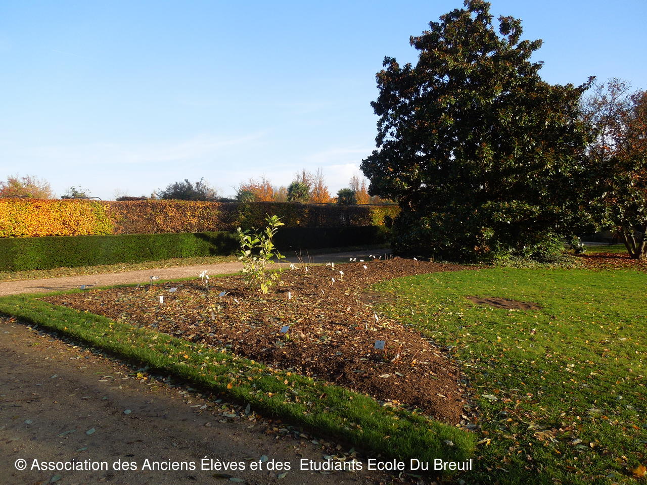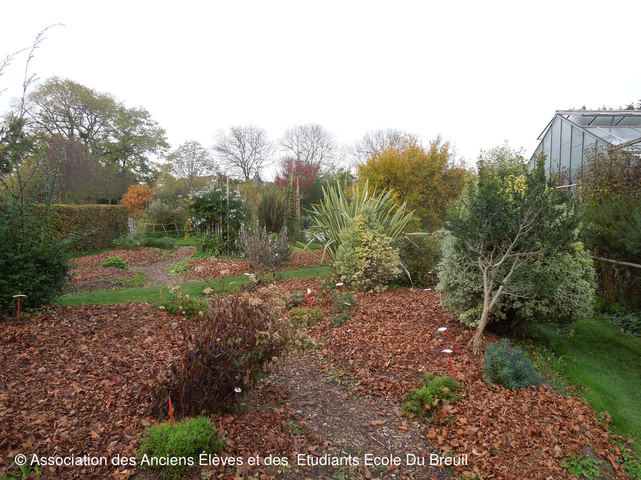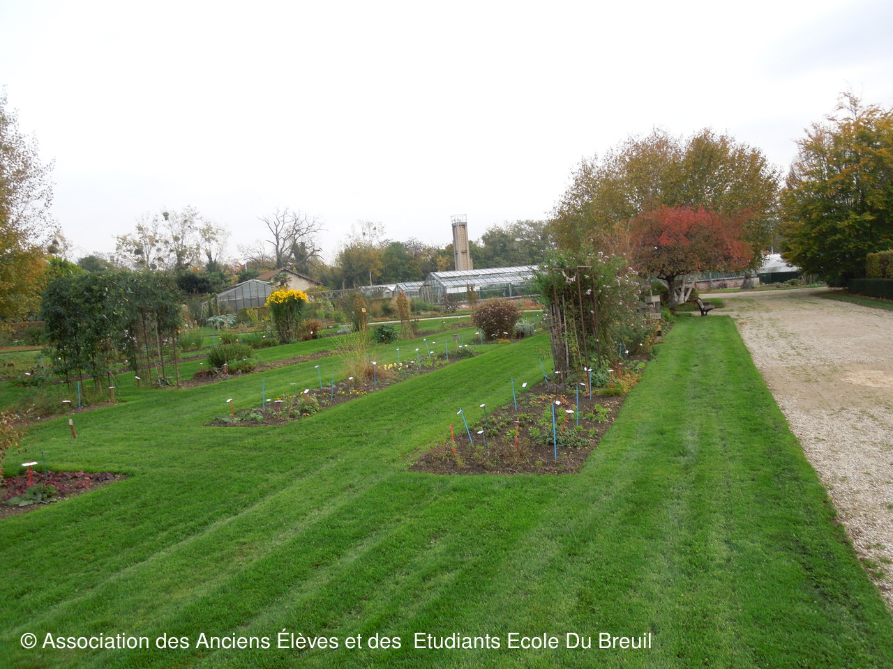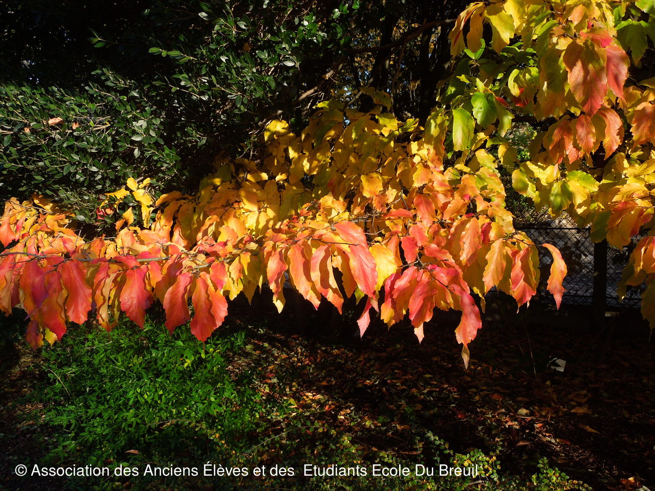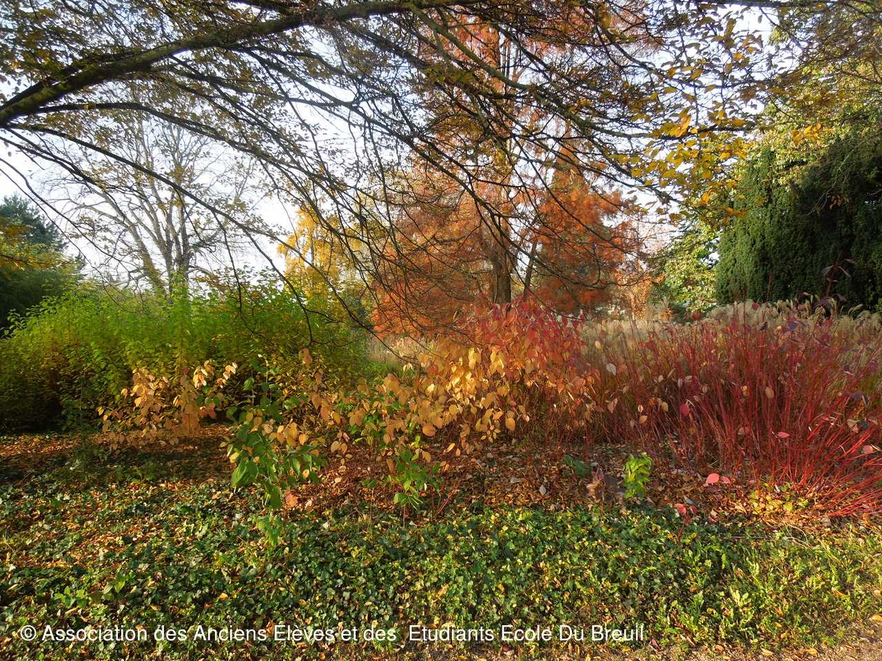 Des plates- bandes florales au fruticetum en passant par la partie paysagère (rénovation d'un massif de terre de bruyère), la mare, le "champ de manoeuvre " des élèves, la roseraie, petit voyage en notre belle école, où les couleurs d'automne sont encore marquées.