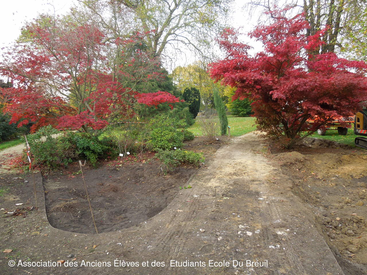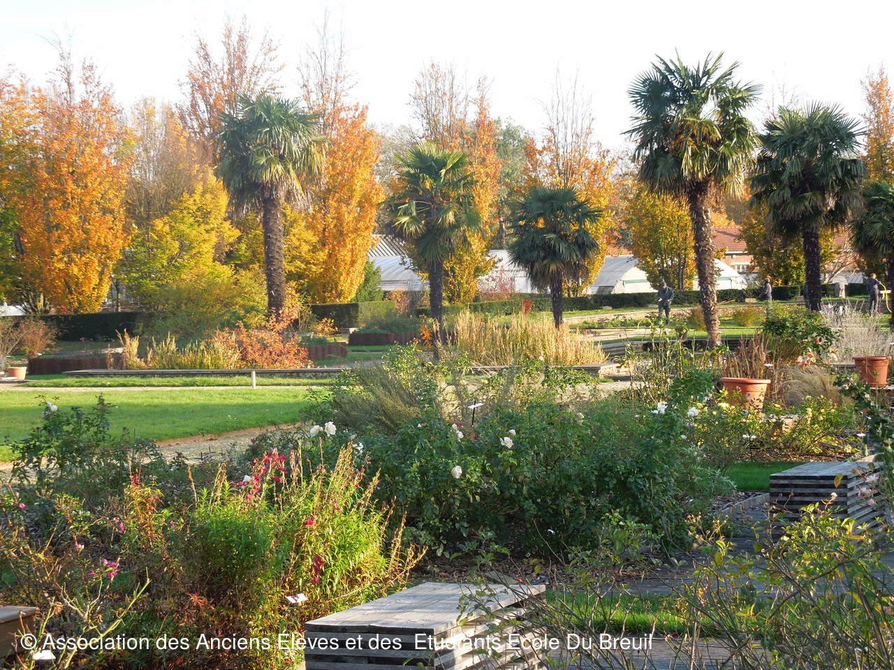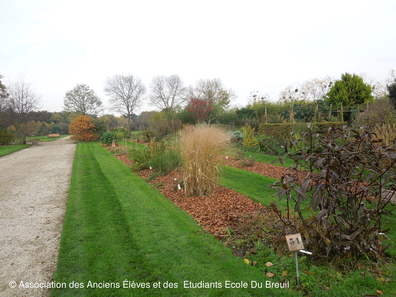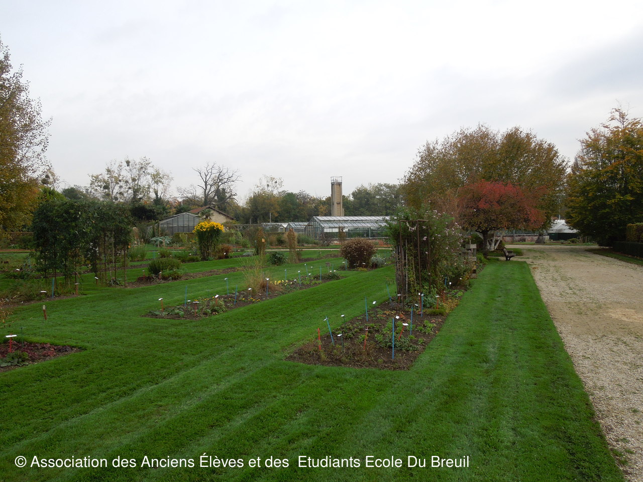 Des plates- bandes florales au fruticetum en passant par la partie paysagère (rénovation d'un massif de terre de bruyère), la mare, le "champ de manoeuvre " des élèves, la roseraie, petit voyage en notre belle école, où les couleurs d'automne sont encore marquées.