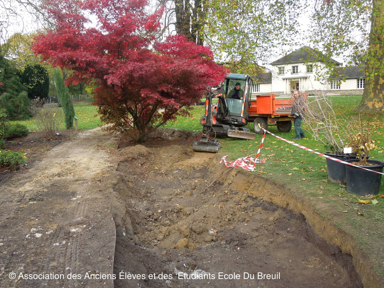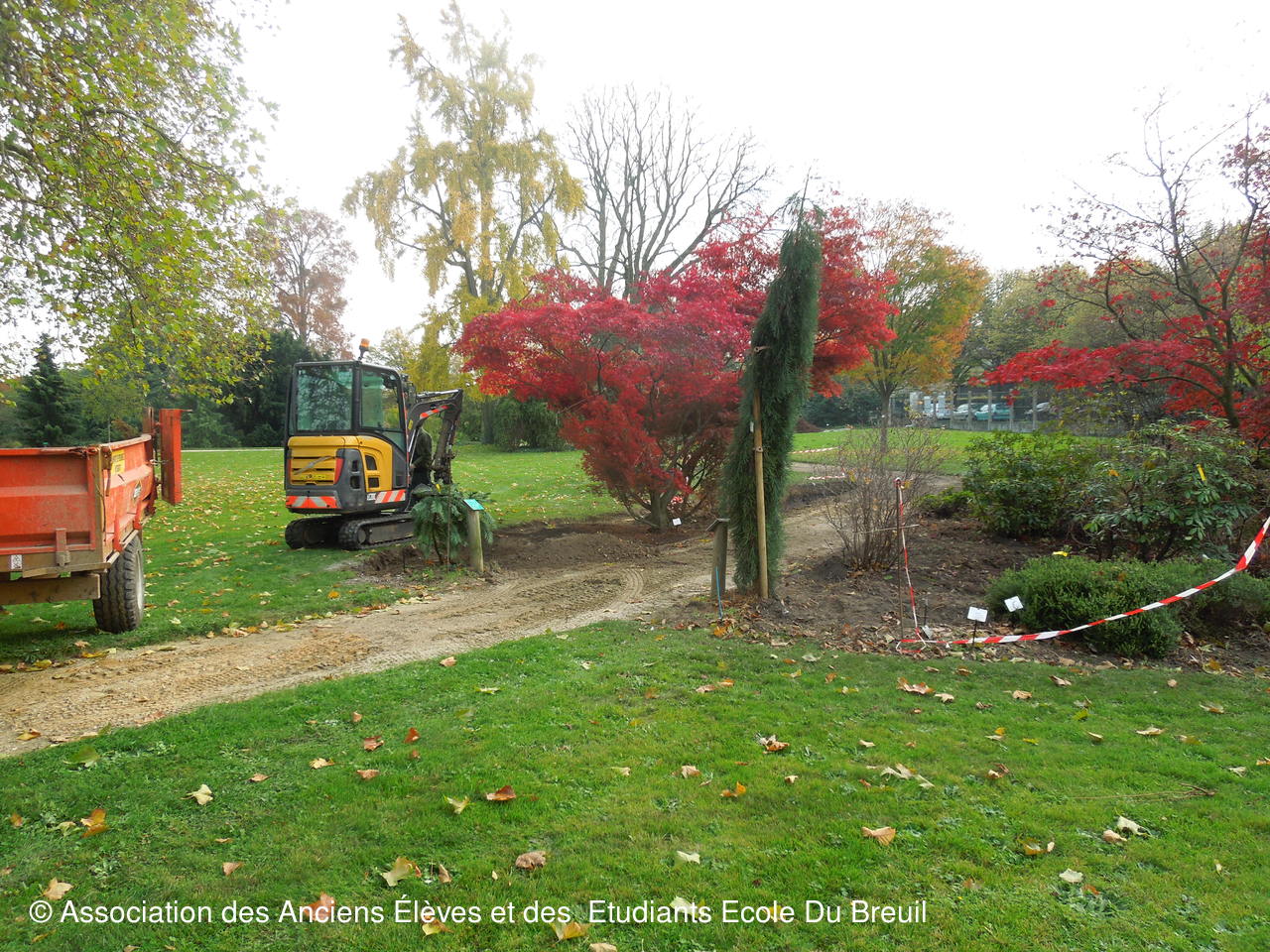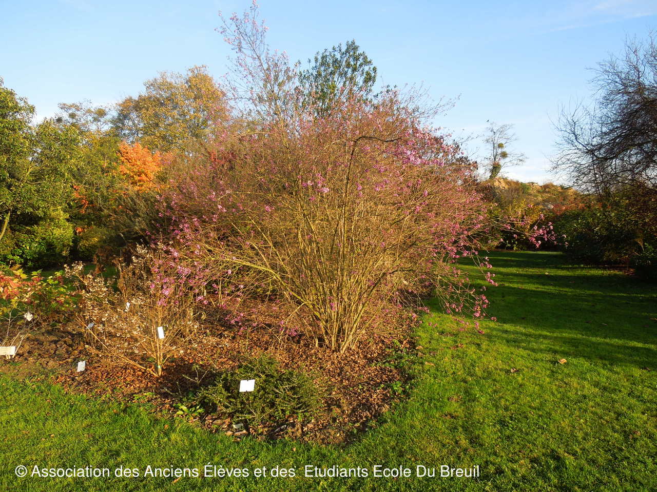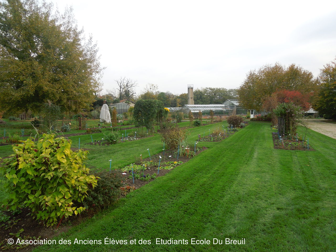 Des plates- bandes florales au fruticetum en passant par la partie paysagère (rénovation d'un massif de terre de bruyère), la mare, le "champ de manoeuvre " des élèves, la roseraie, petit voyage en notre belle école, où les couleurs d'automne sont encore marquées.